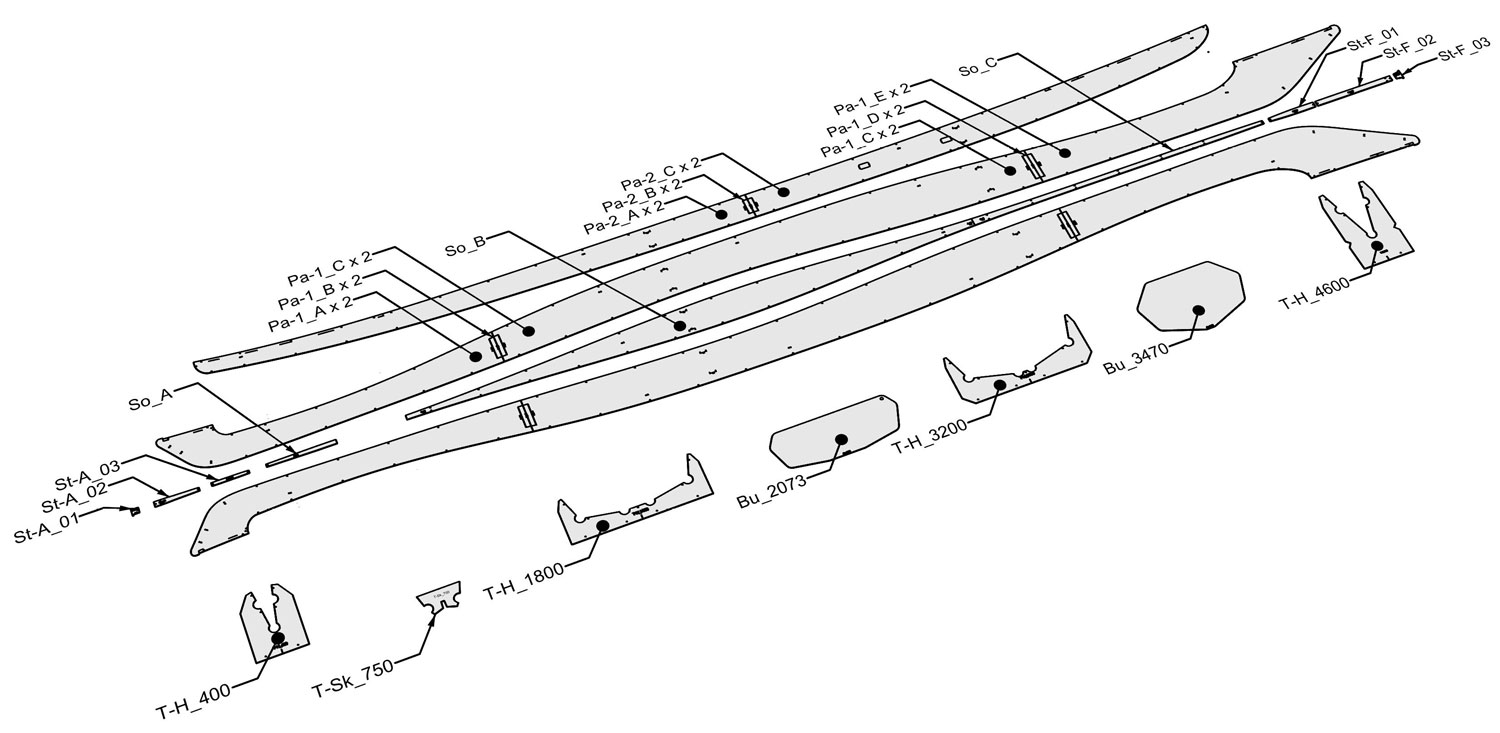 - T-Sk : Tempalte Skeg => Gabarit de la dérive ;